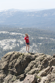 This past weekend I took a weekend off life and went up to Tahoe with my friends Trevor and Matthew. It was awesome getting away from work and stress for a few hours. I've only been to Tahoe once, when I was really young. Anyway, we left after work on Friday, and didn't come back until Sunday night. It was a really great weekend. On Saturday, we went hiking... IN THE SNOW!! Although I'm a Cali girl, I've never "officially" been to the snow. I've seen snow twice, but both times in a t-shirt and with sun. Regardless, it was so so so exciting to walk in snow. I also have never seen snow fall, and I can't wait to see it in New York. From what I've heard, it's beautiful! We hiked 6 miles total, 3 up to the top of a 9,109 foot mountain, then 3 back down to the car. It was difficult for me since I'm so out of shape, and also since I'm not used to that sort of altitude. Here's a picture of me at the top of the mountain.